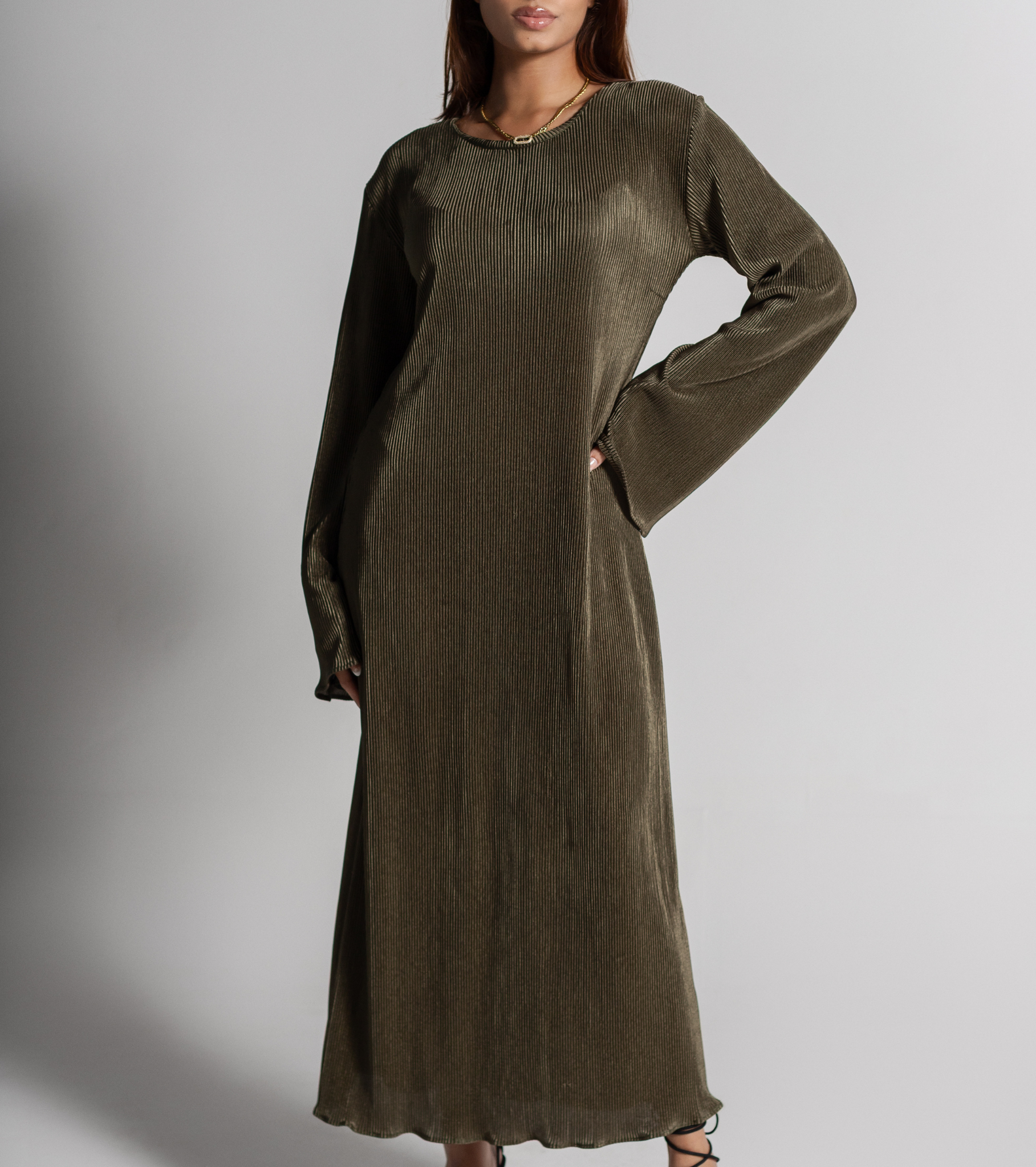 Part of the Al Raha Collection, this small pleated fabric dress combines a simple design with soft, flowing fabric for a timeless, elegant look.